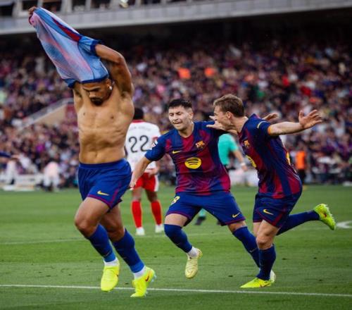 在惨败塞维利亚后,弗里克的巴萨急需一场胜利来稳住军心。伤病潮仍在肆虐,佩德里、亚马尔、德容、拉什福德等核心拼到极限;而赫罗纳则继续扮演巨人杀手的角色。比赛一开始,巴萨的进攻欲望就写在脸上。第3分钟,拉什福德小角度任意球直接攻门,被加萨尼加神勇扑出;第13分钟,亚马尔右路强突横传,佩德里接球转身内切,左脚打出一记反角世界波破门,巴萨1-0,取得梦幻般开局。